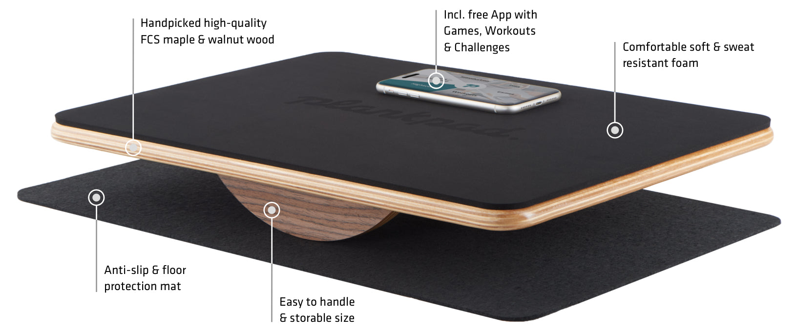 Plankpad ist die perfekte Lösung, wenn du deinen ganzen Körper trainieren möchtest. Planking ist eines der effektivsten Workouts und Plankpad macht das Plank-Workout dynamischer und macht viel mehr Spaß. Das Plankpad kommt mit einer passenden App mit vielen Spielen und da der Fokus auf den Spielen liegt, vergisst du die Zeit, hältst viel länger durch und siehst viel schneller Ergebnisse.