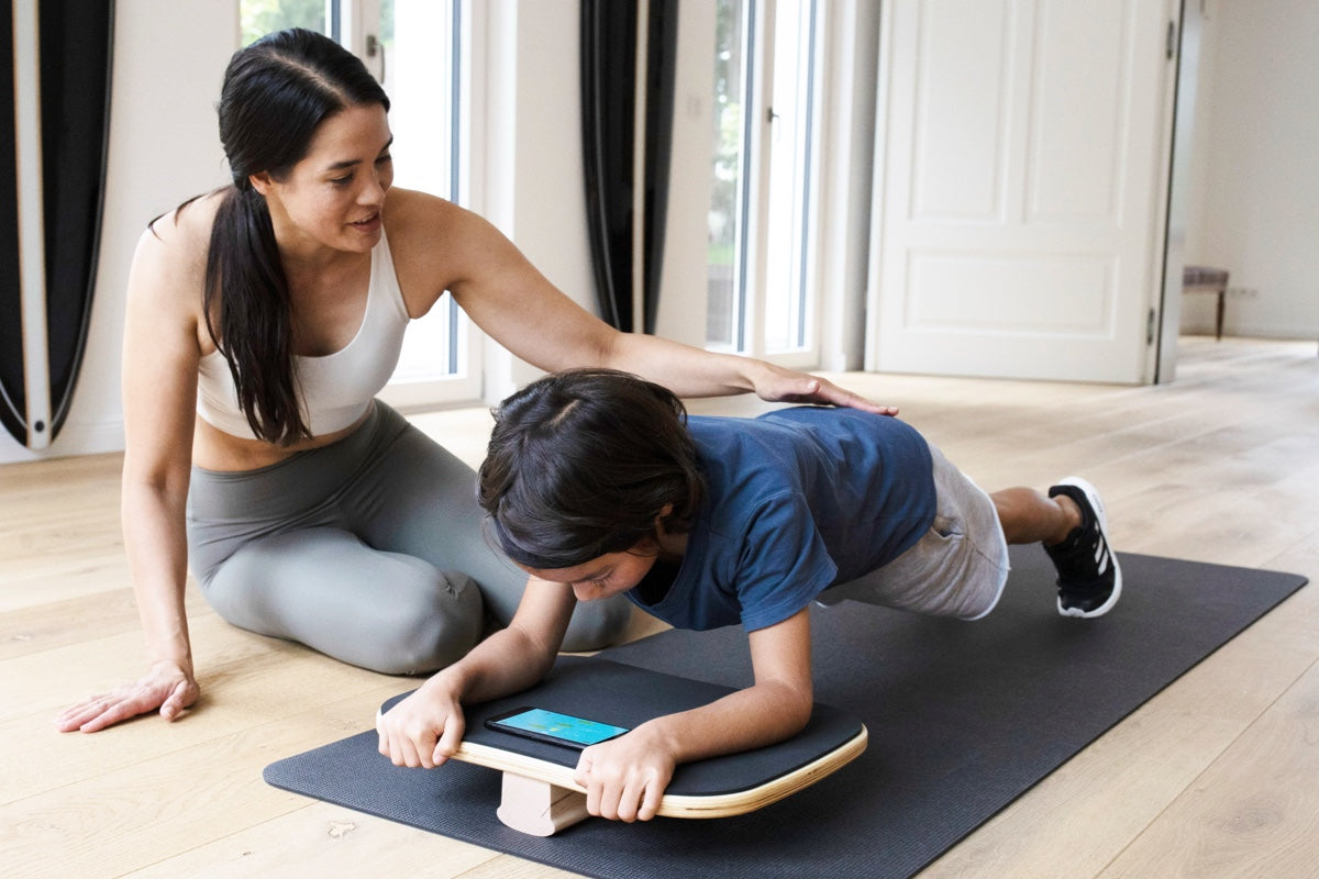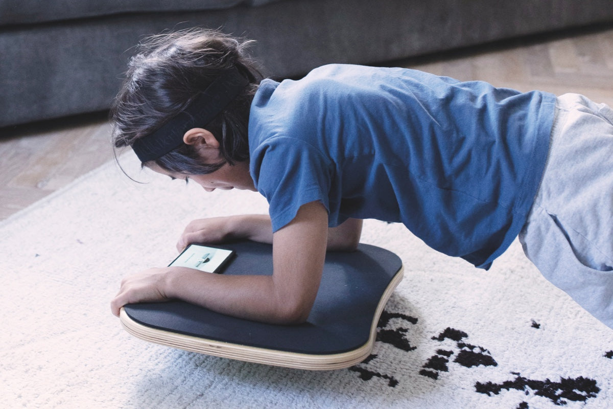 Plankpad Kids comes with an app with many games which makes training much more fun. The app is synchronized with the Plankpad and your movements control the games. The playful training distracts you and lets you hold out much longer.