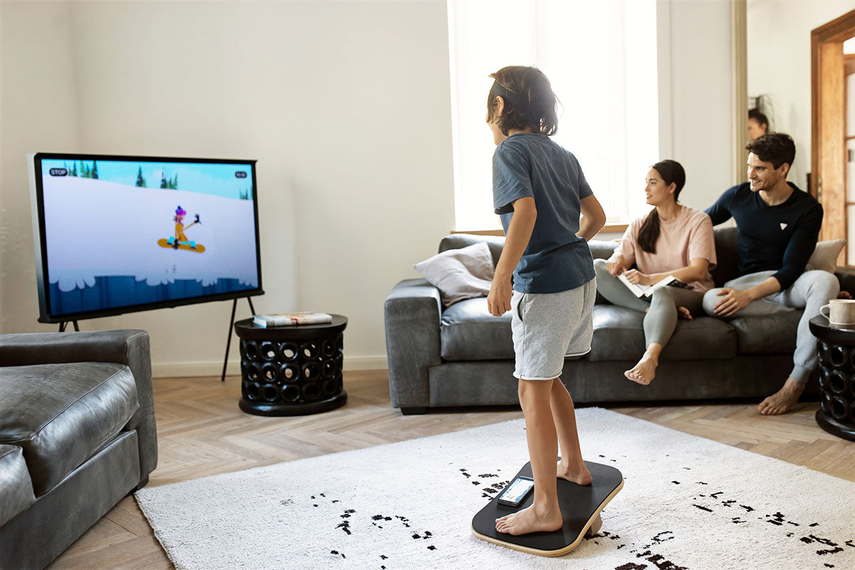 Plankpad can also be used as a balance board. Simply connect your mobile device to your smart TV and launch the app. Enjoy family time, play together and at the same time get fit and train the lower body and coordination. Works well with most smart-TVs and TV adapters like Apple TV, Google Chromecast,